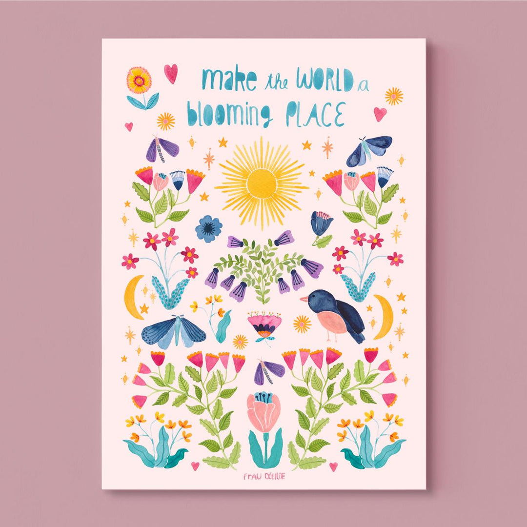 Print A4 *Geschwisterliebe* (Elefant mit Blumen)